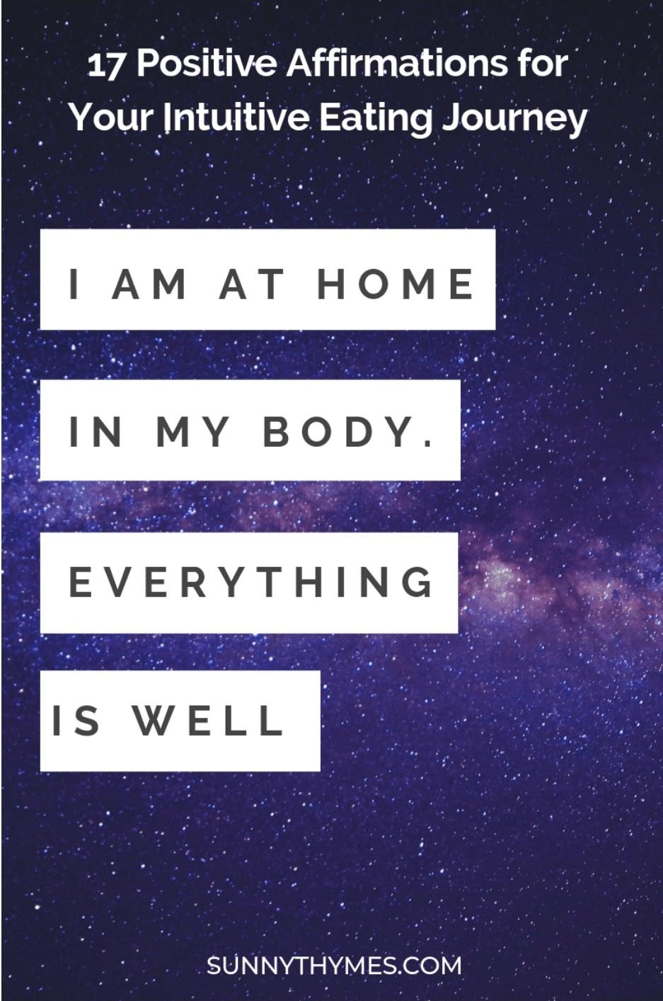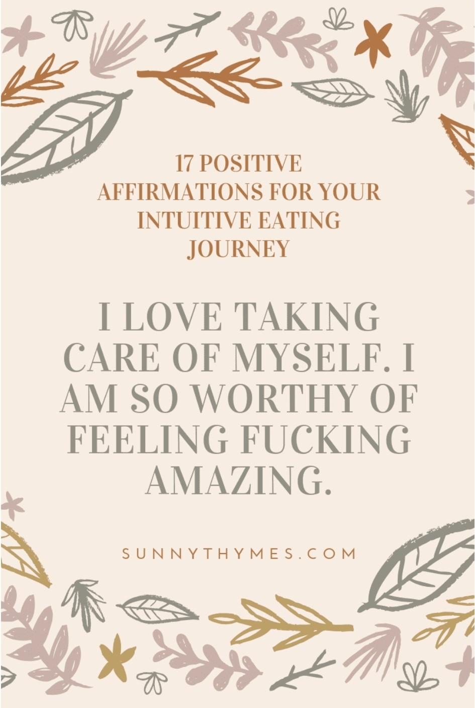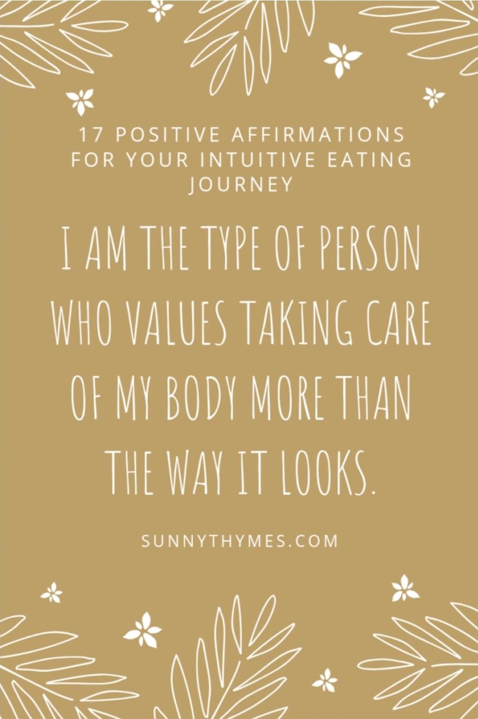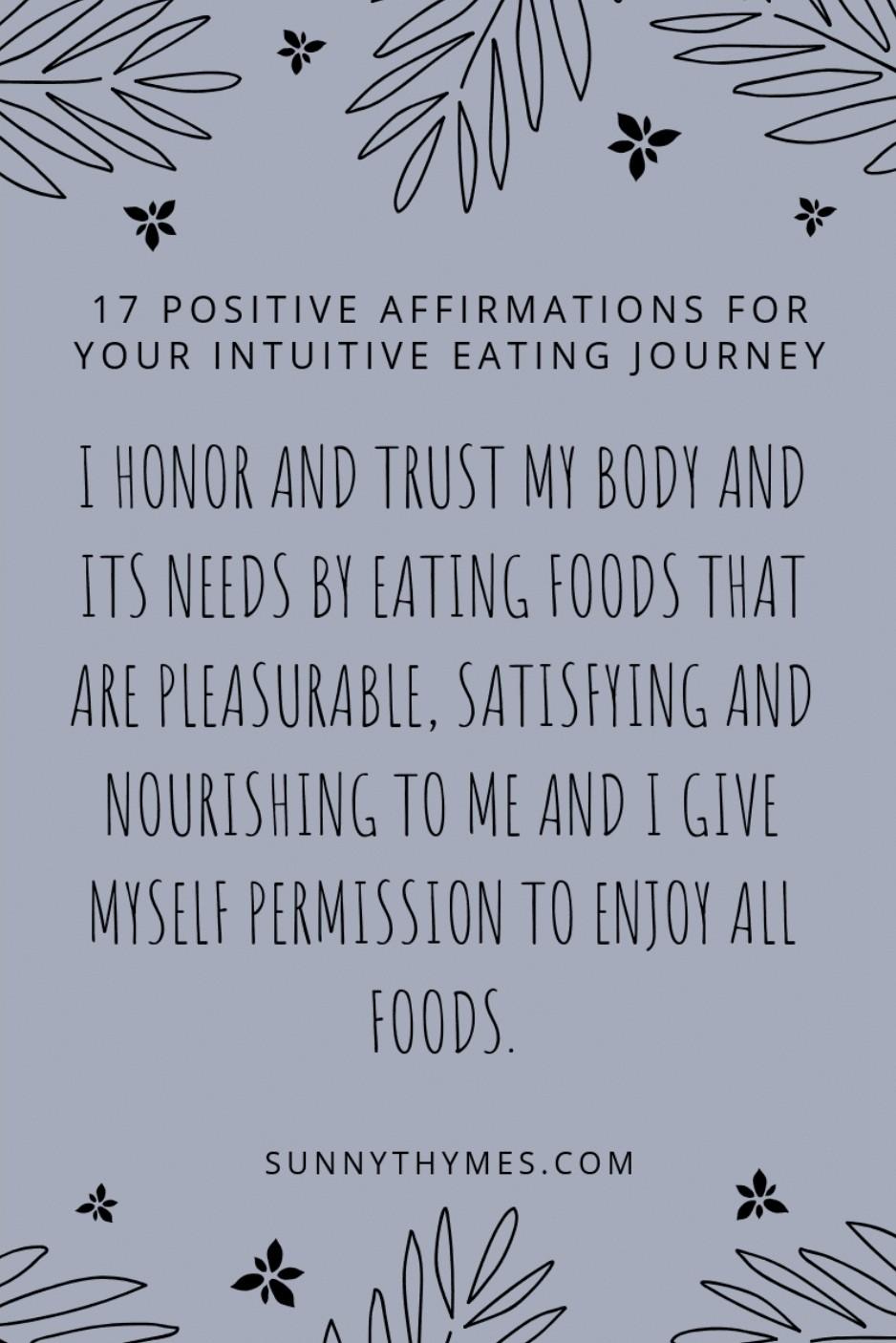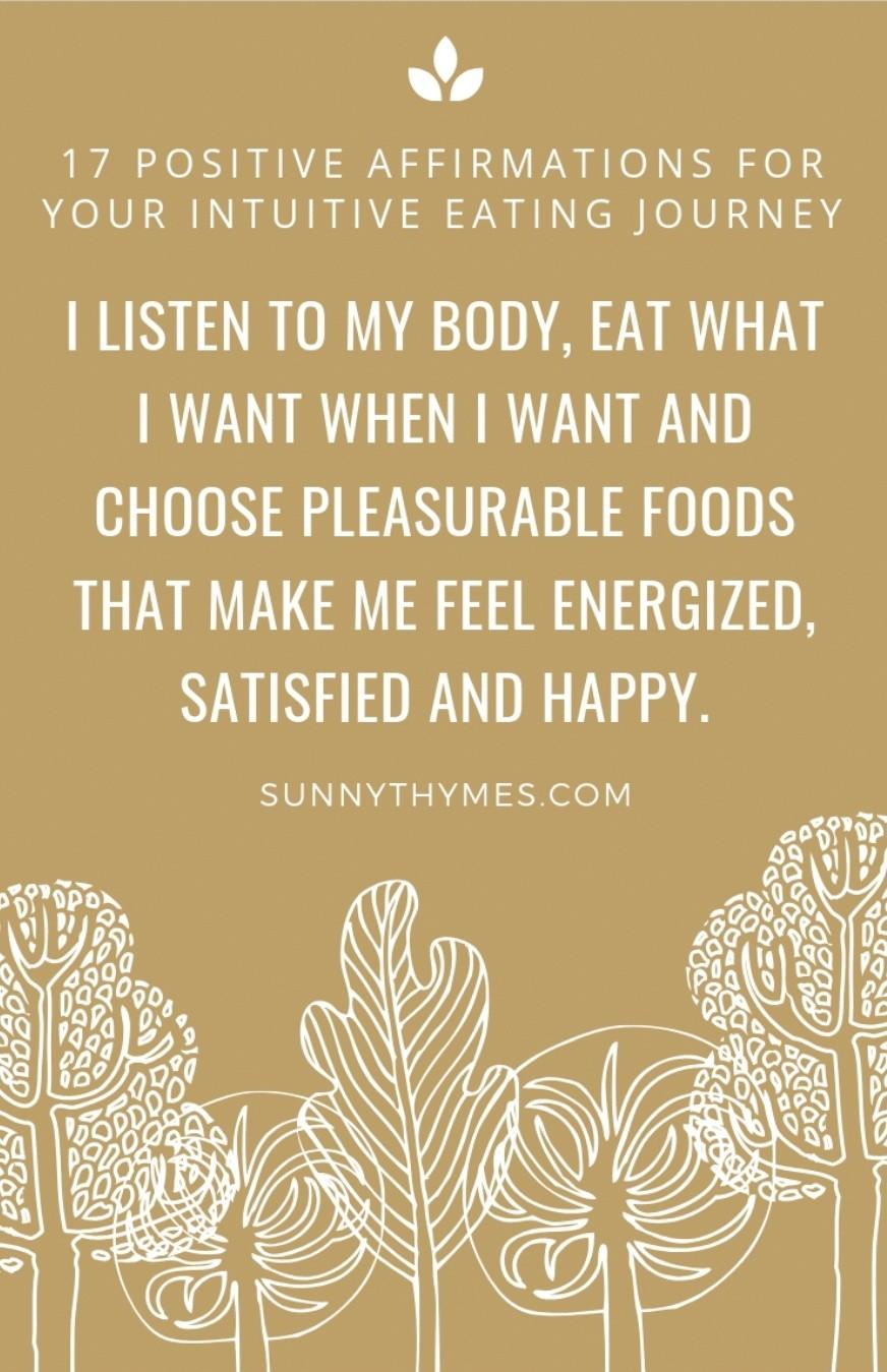 These affirmations will help you put the intuitive eating principles into action and make peace with food and your body. By reframing your negative beliefs about food and your body, you make space for an abundance of positive thoughts that will serve you on your intuitive eating journey.